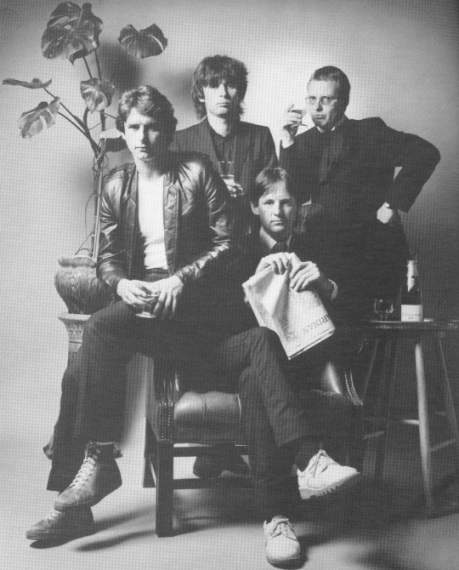 TERRY CHAMBERS, COLIN MOULDING, DAVE GREGORY (SEATED), ANDY PARTRIDGE, LONDON, SEPTEMBER 1980