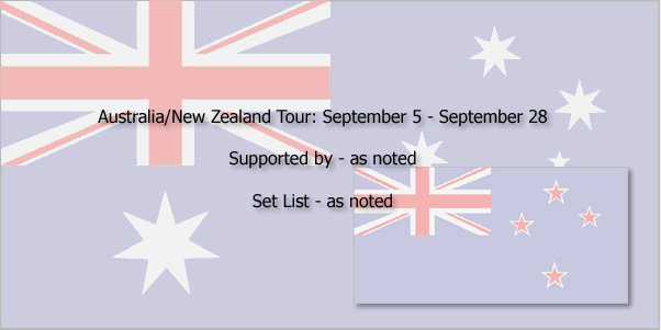 Also on stage: Newtones. September 14, 1980 (St. James Theatre, Wellington, NZ) Also on stage: Puppettz. September 15, 1980 (Logan Campbell Centre, Auckland, NZ) Also on stage: Flight X7.