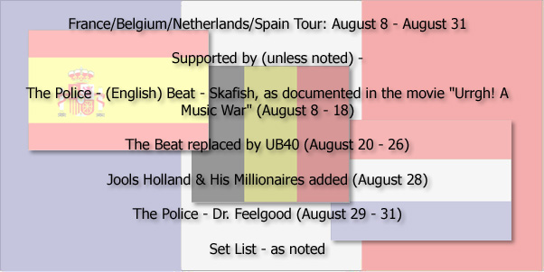 August 8, 1980 (Berg en Bos, Apeldoorn, NL) August 9, 1980 (Werchter Festival, Belgium) August 10, 1980 (Le Touquet Hippodrome, FR) August 12, 1980 (Cabourg Yacht Club, FR) August 14, 1980 (Nantes Palais De La Beaujoire, FR) August 16, 1980 (Royen Municipal Stadium, FR)