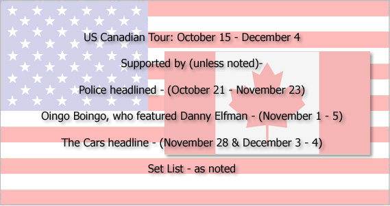 October 25, 1980 (Edmonton Concert Bowl, EdmontonCA) October 27, 1980 (Pine Bowl, Vancouver, BC, CA) October 28, 1980 (Paramount Theater, Seattle, WA, US) October 29, 1980 (Paramount Theater, Portland, OR, US) October 30, 1980 (Auditorium, Oakland, CA, US) October 31, 1980 (Student Union Ballroom, San Jose State Universty, San Jose, CA, US) Also on stage: local support.